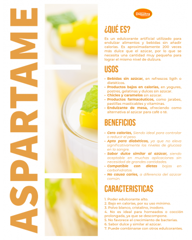Es un edulcorante artificial utilizado para endulzar alimentos y bebidas sin añadir calorías. Es aproximadamente 200 veces más dulce que el azúcar, por lo que se necesita una cantidad muy pequeña para lograr el mismo nivel de dulzura.
