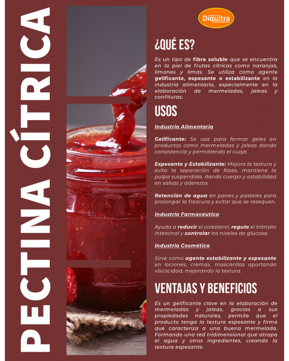 Esta pectina es un aditivo alimentario que se utiliza para dar textura.