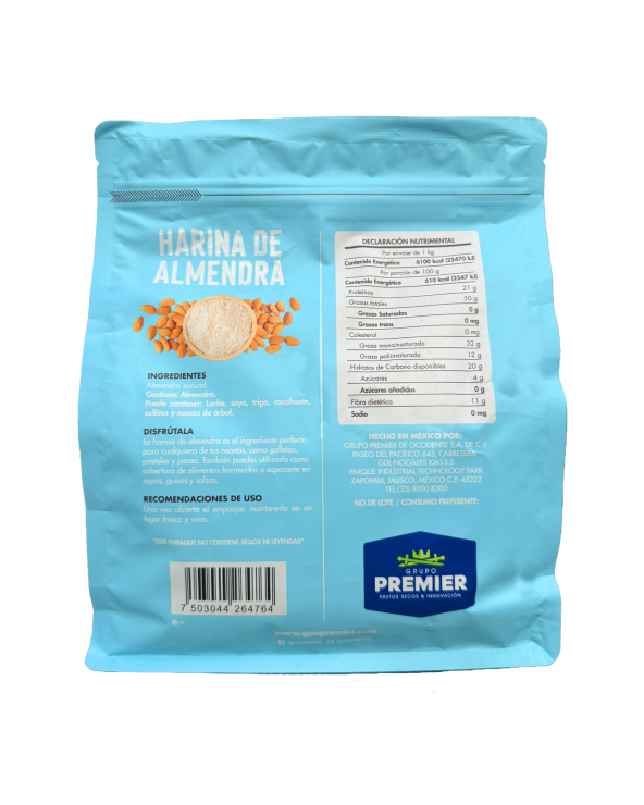 Con un formato de 1 kg, esta harina es perfecta para quienes cocinan con frecuencia y desean tener siempre a mano un ingrediente de calidad. Incorpora la Harina de Almendra Premier en tu despensa y transforma tus recetas en opciones más saludables y deliciosas.