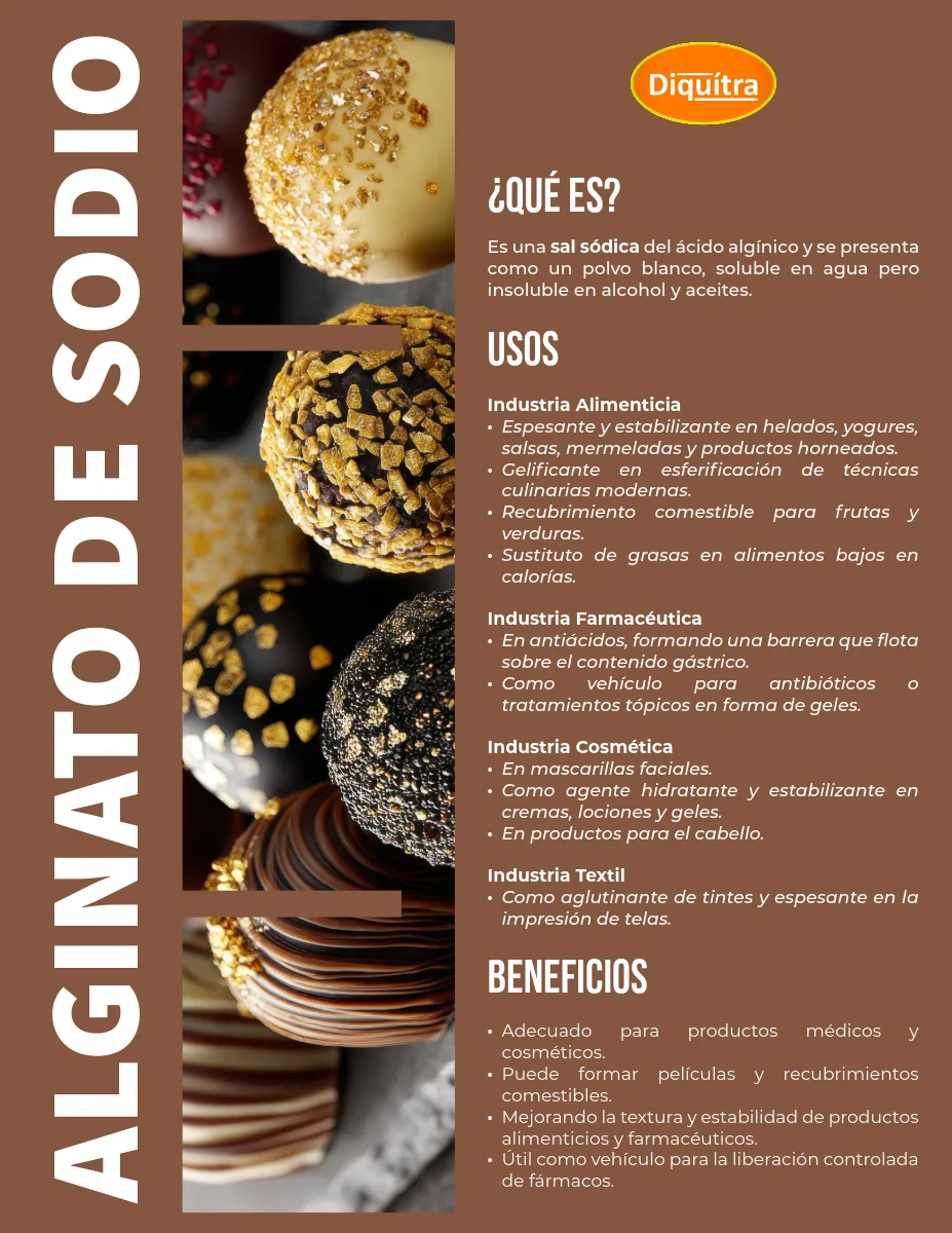 • Requiere iones de calcio: para la gelificación del alginato de sodio es necesario añadir iones de calcio, lo que puede limitar su uso en algunos productos.