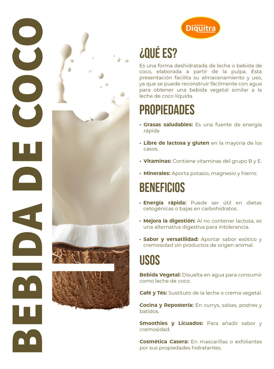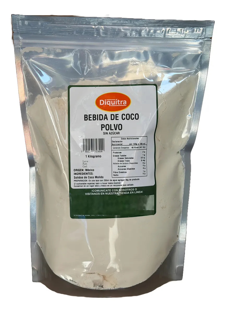 Ingredientes: Bebida elaborada a base de sólidos de coco molido.
