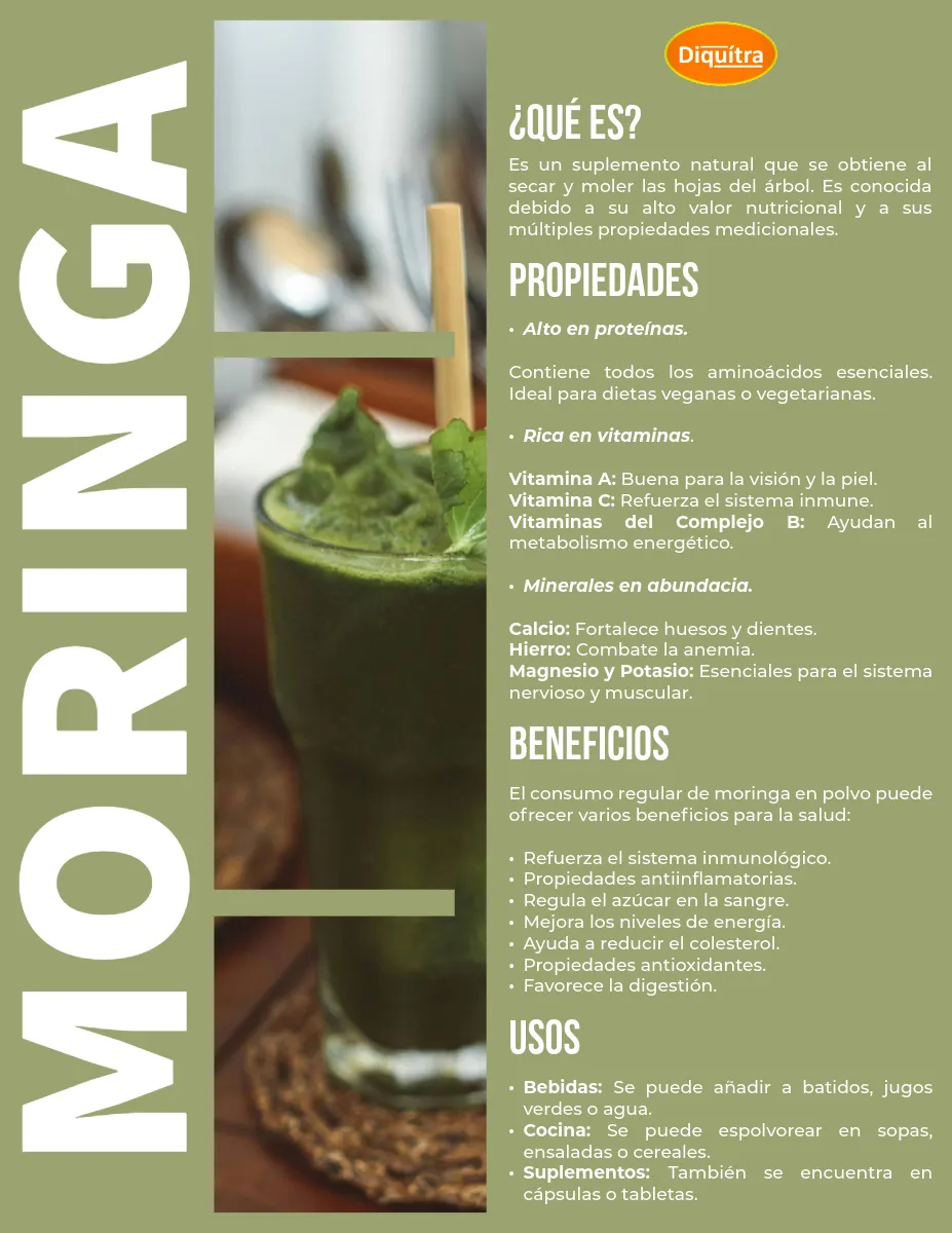 Moringa es el complemento perfecto para potenciar tus defensas de forma natural. Está elaborado a partir de hojas de moringa en polvo (Moringa oleífera), planta utilizada tradicionalmente por su contenido en hierro.