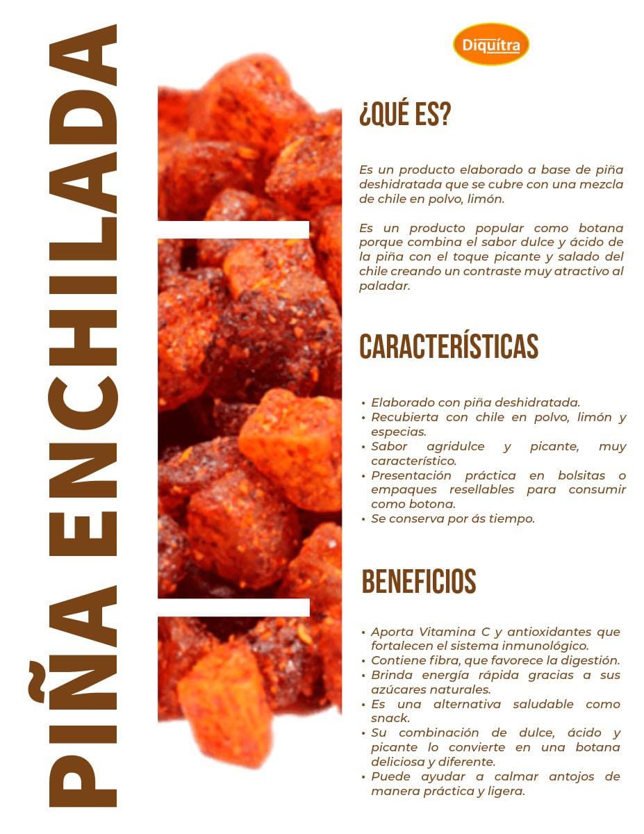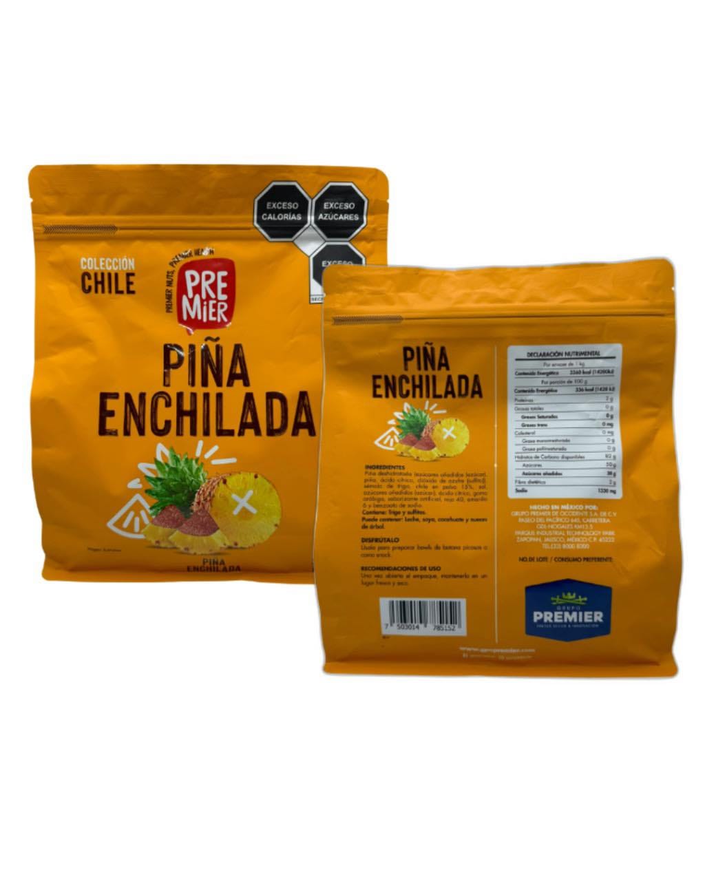 La Piña Natural Enchilada de 1 kg de la marca Premier es una deliciosa opción de botana perfecta para cualquier momento del día. Elaborada con piñas seleccionadas y un toque de sabor enchilado, este snack combina la dulzura natural de la piña con un ligero picante que cautivará a tu paladar.