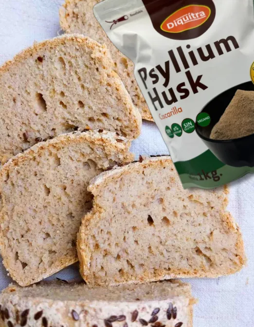 Propiedades y Beneficios: Aporte de fibra a nuestro organismo que es de gran ayuda para las personas que deseen llevar una dieta rica en fibra y regular su transito intestinal. Efecto contra el estreñimiento. Ideal para panes Keto. Asociado a la disminución de niveles de colesterol y azúcar en la sangre. Permite absorber una gran cantidad de agua, retenerla y formar una masa viscosa y pegajosa. Por ello, generalmente mejora las propiedades físicas de las masas sin glúten debido a su poder felificante. Presenta un alto poder espesante, similar al gel de chía o lino, que la industria suele añadir para retener el agua en formulaciones.